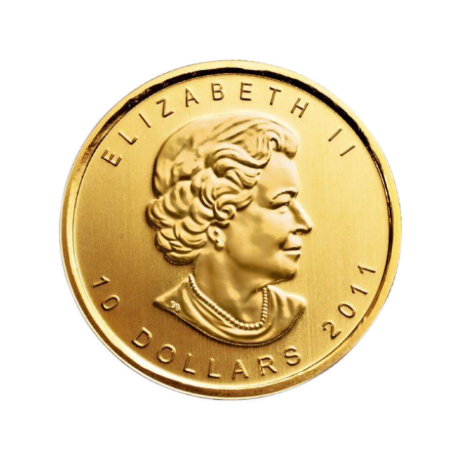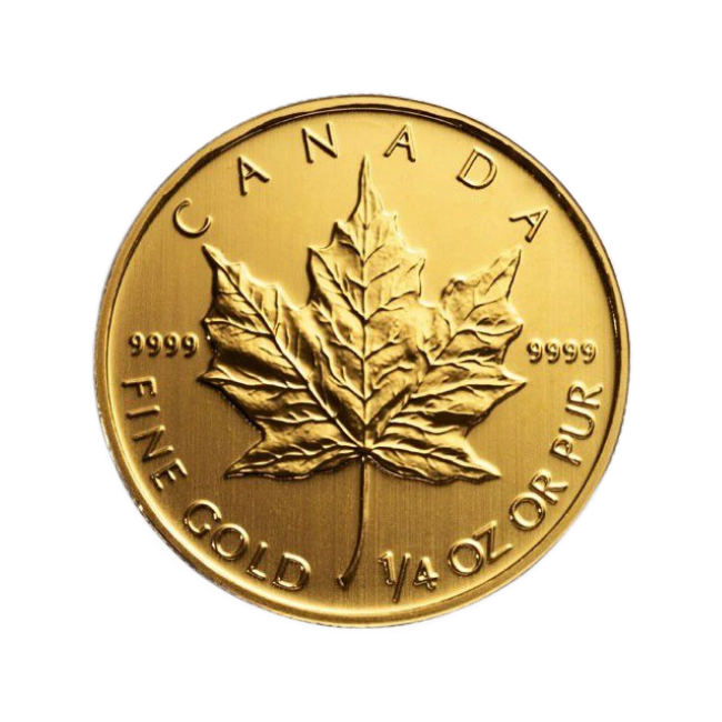 Emitida por primera vez por la Royal Canadian Mint en 1979, la Gold Maple se ha vuelto una de las monedas de oro más populares del mundo. Reconocida por su pureza (fue la primera moneda en lograr la máxima pureza de 0.999 o "four-nines") y admirada por su belleza, esta moneda es de curso legal en un pais bien conocido por su estabilidad, independencia y libertad. Esta moneda y su contenido en oro está garantizado por el Gobierno de Canadá.