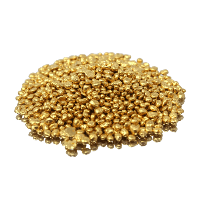 La Granalla de oro es la pepita o gotita que se obtiene luego de la extracción del metal de las minas de oro, de su refinamiento y proceso de limpieza. Es una bolita de metal puro, lista para utilizarse en la fabricación de joyas, para el hogar o para aplicaciones industriales, inclusive.