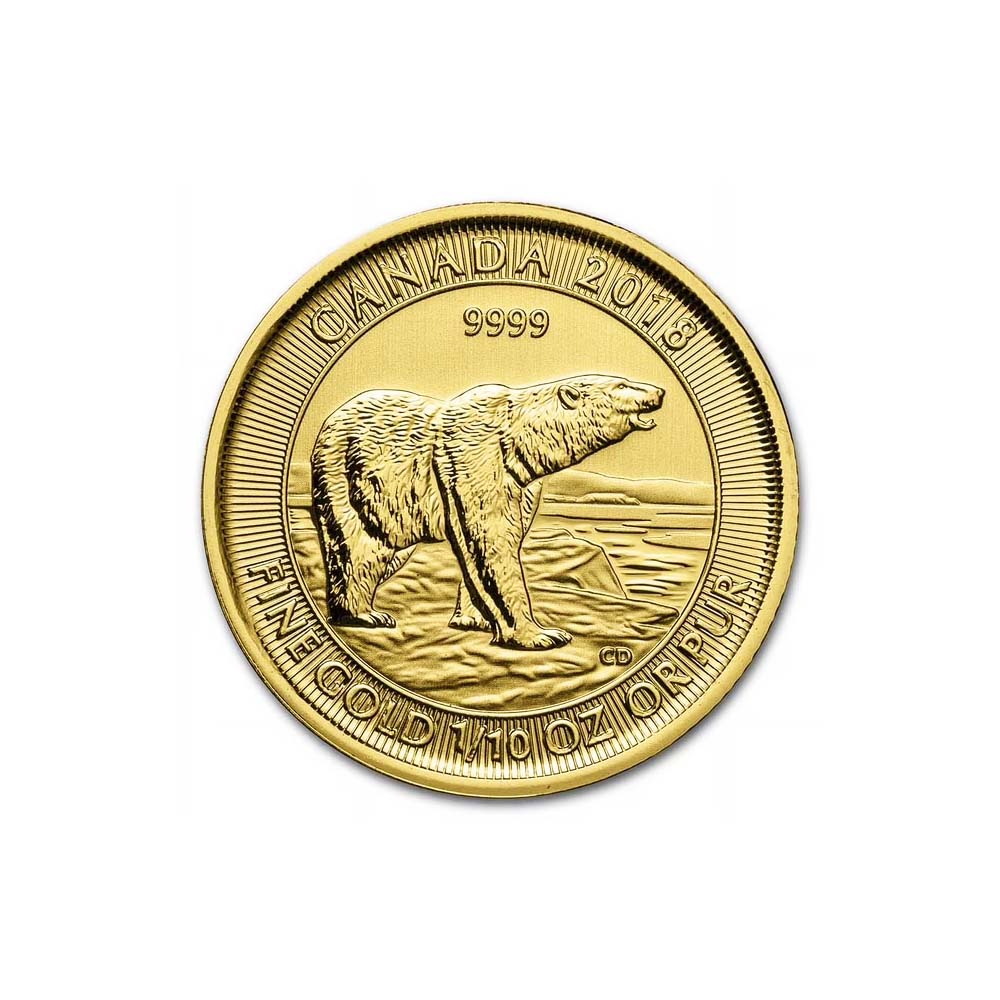 La moneda Gold Polar Bear 1/10 oz Canadá 2018 es una moneda de inversión de alta pureza y diseño icónico que combina atractivo estético con especificaciones técnicas precisas: está acuñada en oro fino .9999 (99,99 % pureza), con un contenido de 1/10 onza troy de oro puro (aproximadamente 3,11 g), un diámetro de 16 mm y un grosor aproximado de 1,22 mm, presentando un canto estriado y un estado Brilliant Uncirculated (BU) que conserva su acabado original sin circular. Su valor nominal es de 5 dólares canadienses, respaldados por el Gobierno de Canadá, y en el anverso figura la efigie de la reina Isabel II —diseñada por Susanna Blunt— mientras que el reverso ilustra un oso polar en un motivo que evoca la naturaleza ártica de Canadá. Esta combinación de pureza, peso, tamaño compacto y diseño cuidadosamente ejecutado por la Royal Canadian Mint hace de esta moneda una pieza de fácil manejo y almacenamiento, ideal tanto para quienes buscan entrar en el mercado del oro físico con un formato accesible como para coleccionistas que valoran piezas de fauna emblemática con especificaciones técnicas claras y estandarizadas.