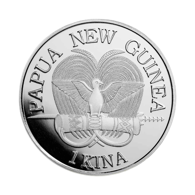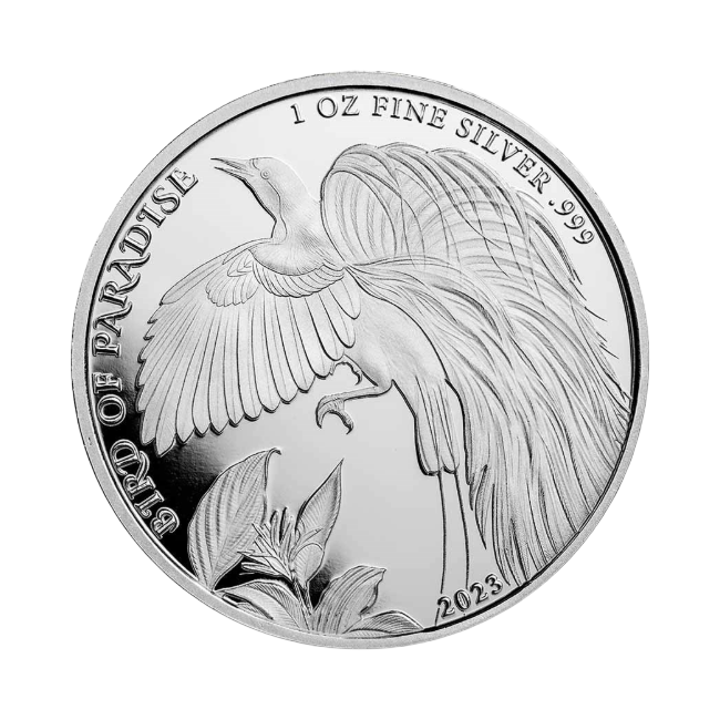 La moneda “Ave del Paraíso” 2023 de Papúa Nueva Guinea es una pieza bullion de alta calidad emitida por el Gobierno de Papúa Nueva Guinea con curso legal en ese país, perteneciente a la serie temática Bird of Paradise y diseñada para inversores y coleccionistas que buscan metales preciosos con atractivo artístico y respaldo soberano. Esta moneda está acuñada en plata fina con una pureza de .999 (99,9 %), con un peso de 1 onza troy (31,1 g) y un diámetro de 39 mm, y se entregan en cápsula protectora individual para preservar su estado BU (Brilliant Uncirculated / brillante sin circular). Su valor nominal es de 1 Kina, aunque su valor real en mercado depende principalmente de la cotización de la plata y del interés numismático que genera la serie. La tirada está limitada a 10 000 unidades a nivel mundial, lo que otorga cierto grado de exclusividad dentro del segmento de monedas bullion modernas. En el anverso se representa el emblema nacional de Papúa Nueva Guinea, con la inscripción “PAPUA NEW GUINEA” y el valor facial, mientras que en el reverso figura un diseño detallado de un ave del paraíso en vuelo o posada sobre una planta con flores, acompañado de las inscripciones “BIRD OF PARADISE”, el peso, la pureza y el año de emisión “2023”. El canto de la pieza es estriado (rayado) y su manufactura está asociada a mintas especializadas (como MDM Mint) bajo licencia del emisor. Esta emisión combina valor intrínseco por su contenido de plata con un diseño culturalmente representativo —el ave del paraíso es símbolo nacional de Papúa Nueva Guinea y figura también en su bandera y escudo de armas— lo que agrega atractivo para coleccionistas temáticos además de su uso como metal de inversión