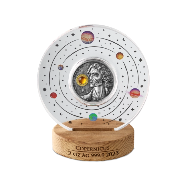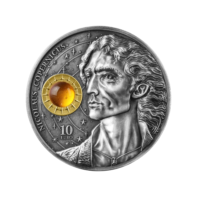 El anverso de la moneda con la imagen de Copérnico está ennoblecido con un sol ambarino. El reverso es un sistema solar del siglo XVI. La moneda, diseñada por Natalia Danysz, estará disponible en un embalaje único, con una tirada de 1.473 piezas numeradas.