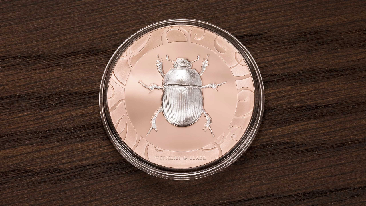 La tecnología de acuñación empleada, conocida como smartminting®, permite que cada relieve del escarabajo se represente con gran nitidez y detalle, logrando una impresión casi escultórica que eleva la pieza más allá de su metal constituyente y la sitúa como una obra de arte numismática moderna.
