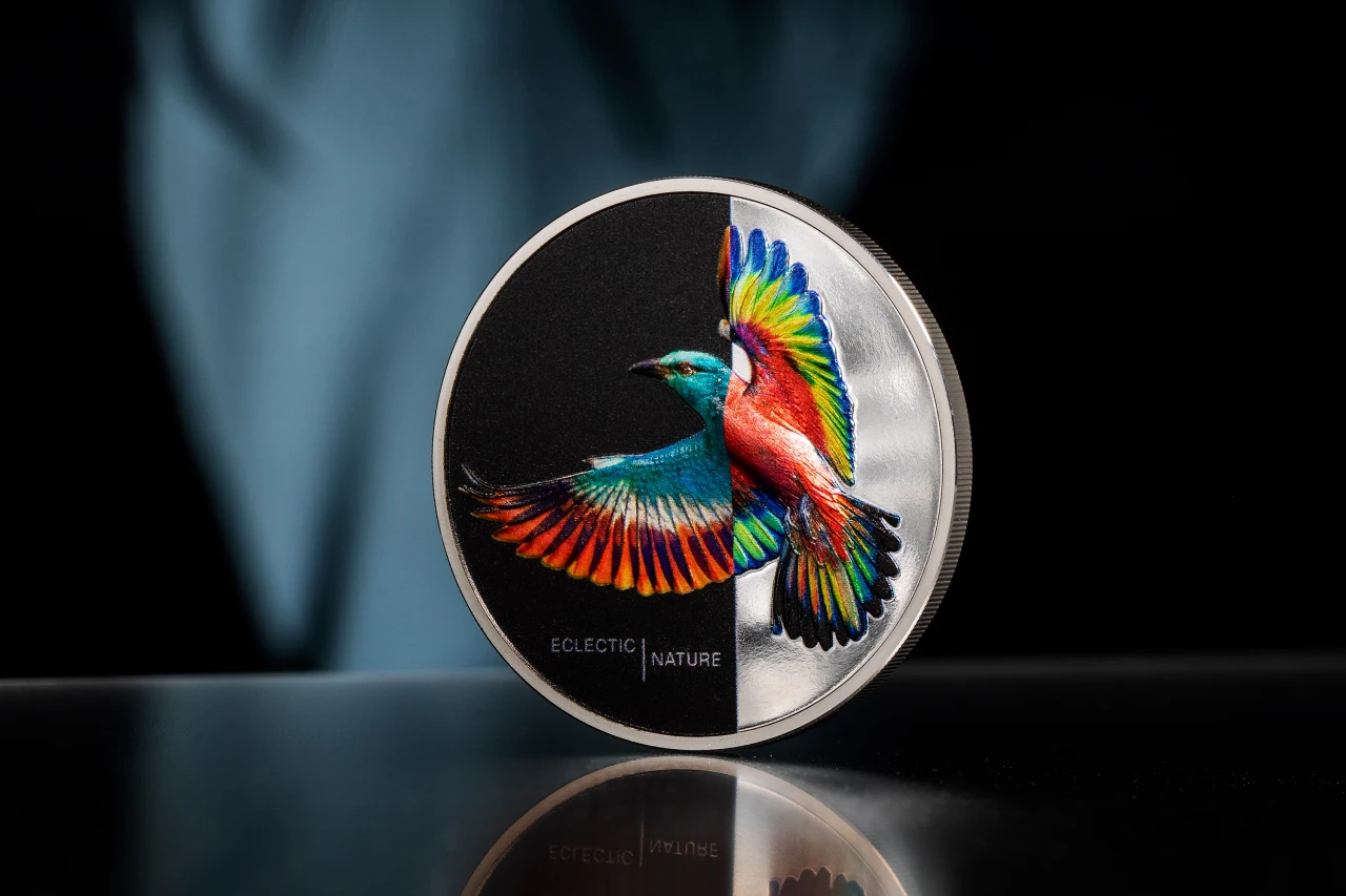 La tirada está limitada a 1 500 ejemplares, lo que asegura que cada unidad sea relativamente exclusiva y deseable para quienes buscan distinguir su colección con piezas únicas. El diseño de esta moneda rinde homenaje al elegante European Roller, un ave de plumaje vibrante en tonos turquesa y azul que es nativa de partes de Europa, el norte de África y Asia, y que es conocida por sus acrobáticas exhibiciones de vuelo durante el cortejo, incorporando un motivo naturalista que destaca por su colorido y simbolismo dentro de la naturaleza Old World (Viejo Mundo). Esta combinación de arte, calidad técnica y tirada limitada convierte a la moneda “Roller” en una incorporación valiosa para colecciones temáticas de fauna, plata de inversión o piezas con alto atractivo visual y narrativo.