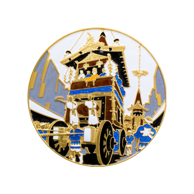 Esta moneda de plata cloisonné representa el Festival de Gion, que, a lo largo de su larga historia y tradición, es reconocido como uno de los tres festivales más importantes de Japón.