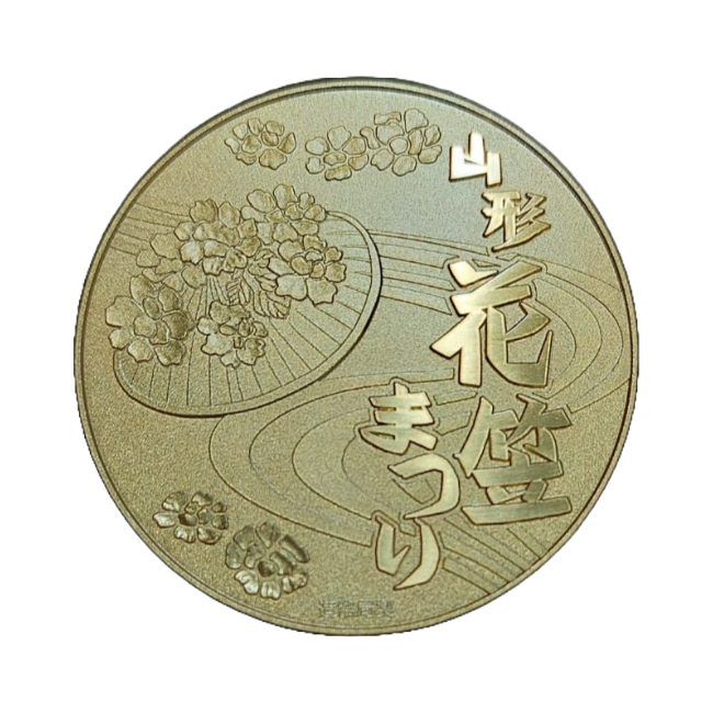 Reverso: presenta un sombrero de flores que caracteriza el festival y cártamos, la flor de la Prefectura de Yagamata; y tiene líneas curvas que simbolizan el río Mogami que fluye a través de la Prefectura de Yamagata en el fondo.