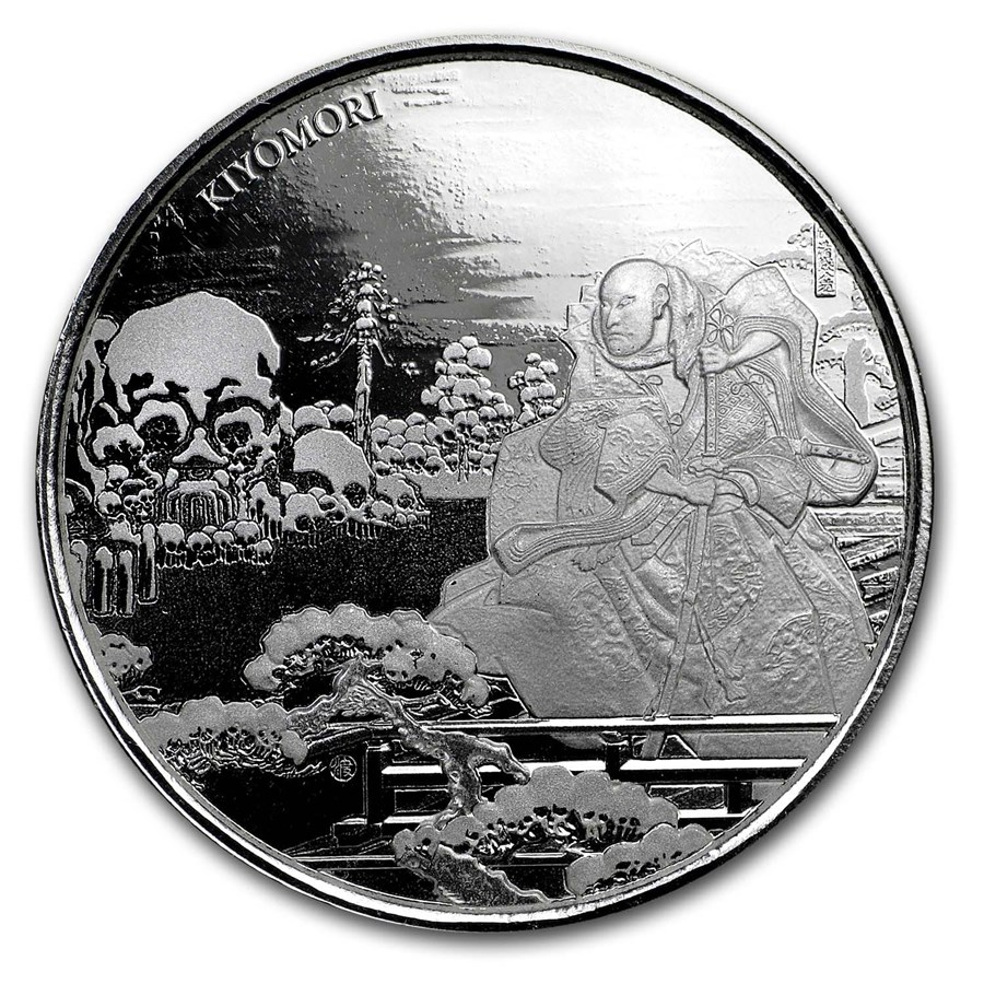 El diseño de la moneda remite a la figura histórica y legendaria de Taira no Kiyomori, un líder militar japonés del siglo XII que consolidó el poder del clan Taira y estableció el primer gobierno dominado por samuráis en la historia de Japón durante el periodo Heian tardío. La representación artística de Kiyomori que aparece en el reverso de la moneda está inspirada en una obra del pintor japonés Utagawa Hiroshige, titulada Taira no Kiyomori’s Spectral Vision, que lo muestra reflexionando sobre su ascenso al poder y las consecuencias de sus acciones, simbolizadas mediante una escena con cráneos invernales, lo cual dota a la emisión de un trasfondo narrativo y estético distintivo.