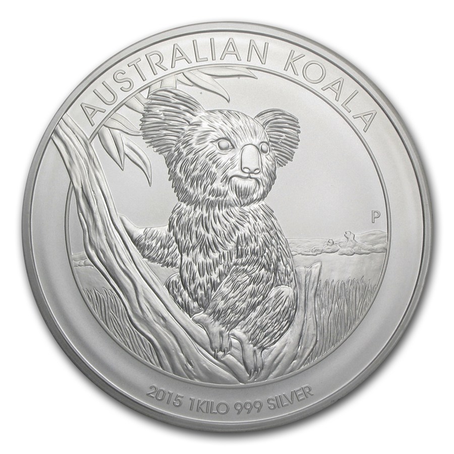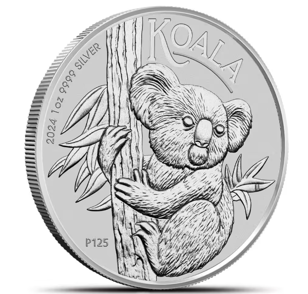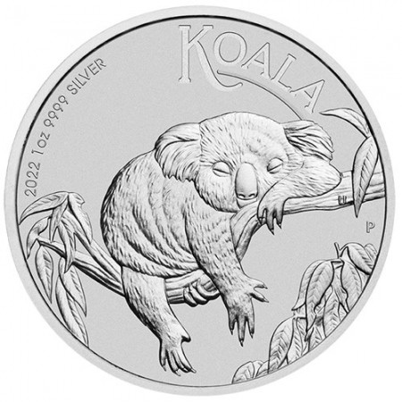 Esta moneda de koala australiano muestra a un koala trepando a un árbol con un joven “joey” dependiente aferrado a su lomo en busca de seguridad. Además de la inscripción “KOALA” y la marca de ceca “P” de la Casa de la Moneda de Perth, el reverso incluye el peso, la pureza y el año de acuñación.