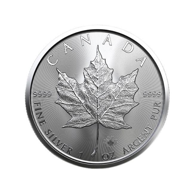 Las monedas de hoja de arce canadiense de la Royal Canadian Mint (RCM) son monedas conocidas en todo el mundo en oro, platino, paladio y plata. Desde que fue acuñada por primera vez por la Royal Canadian Mint en 1988, la icónica Moneda de Plata Hoja de Arce Canadiense de 1 oz se ha convertido en una de las monedas de plata más populares del mundo. Esta moneda de plata de 1 onza tiene el valor nominal más alto de todas las monedas de plata acuñadas de gran volumen. La moneda de plata hoja de arce canadiense de 1 oz fue la primera moneda de plata en alcanzar un nivel de pureza de .9999 lingotes de plata fina.