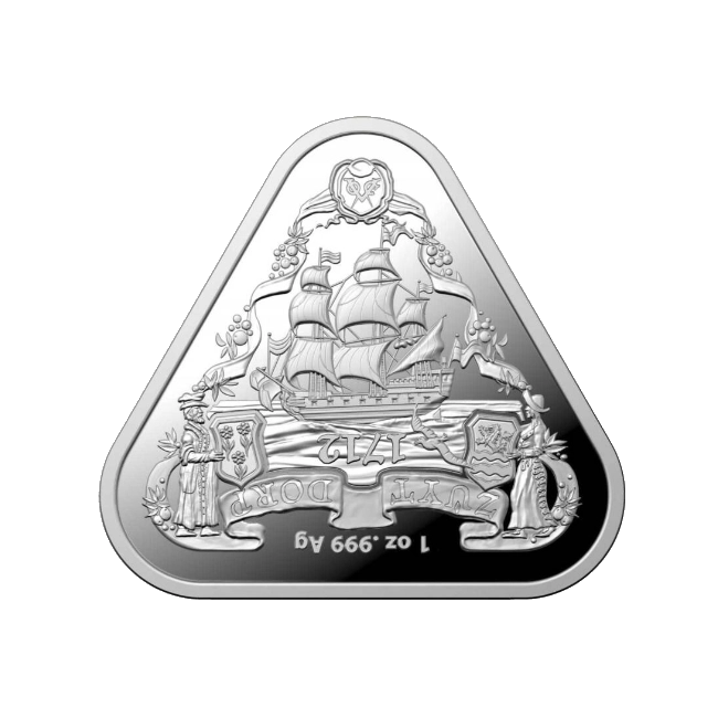 Reverso: Muestra el barco Zuytdorp rodeado de ornamentos marítimos decorativos. La inscripción incluye el nombre del barco "ZUYTDORP" y el año "1712"1.